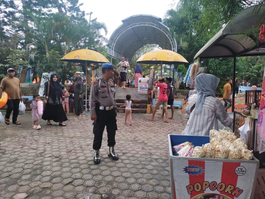 Waterboom Mangat Ceria yang ramai dikunjungi warga menjadi salah satu tujuan favorit selama liburan sekolah. Kehadiran polisi diharapkan memberikan rasa nyaman bagi pengunjung untuk menikmati liburan dengan tenang.