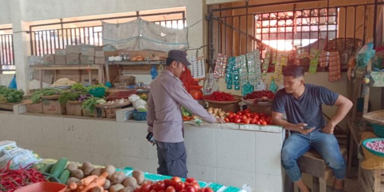 LHOKSEUMAWE – Personel Polsek Blang Mangat melaksanakan patroli dan memantau stok sembako di Pasar Tradisional Keude Puntuet, Kec. Blang Mangat, Kota Lhokseumawe, selasa (12/6/2024) pagi.