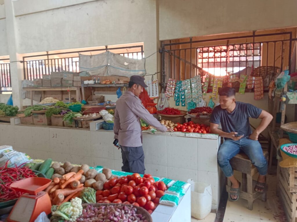 LHOKSEUMAWE – Personel Polsek Blang Mangat melaksanakan patroli dan memantau stok sembako di Pasar Tradisional Keude Puntuet, Kec. Blang Mangat, Kota Lhokseumawe, selasa (12/6/2024) pagi.