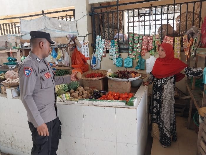 LHOKSEUMAWE – Personel Polsek Blang Mangat melaksanakan patroli dan memantau stok sembako di Pasar Tradisional Keude Puntuet, Kec. Blang Mangat, Kota Lhokseumawe, selasa (14/5/2024).