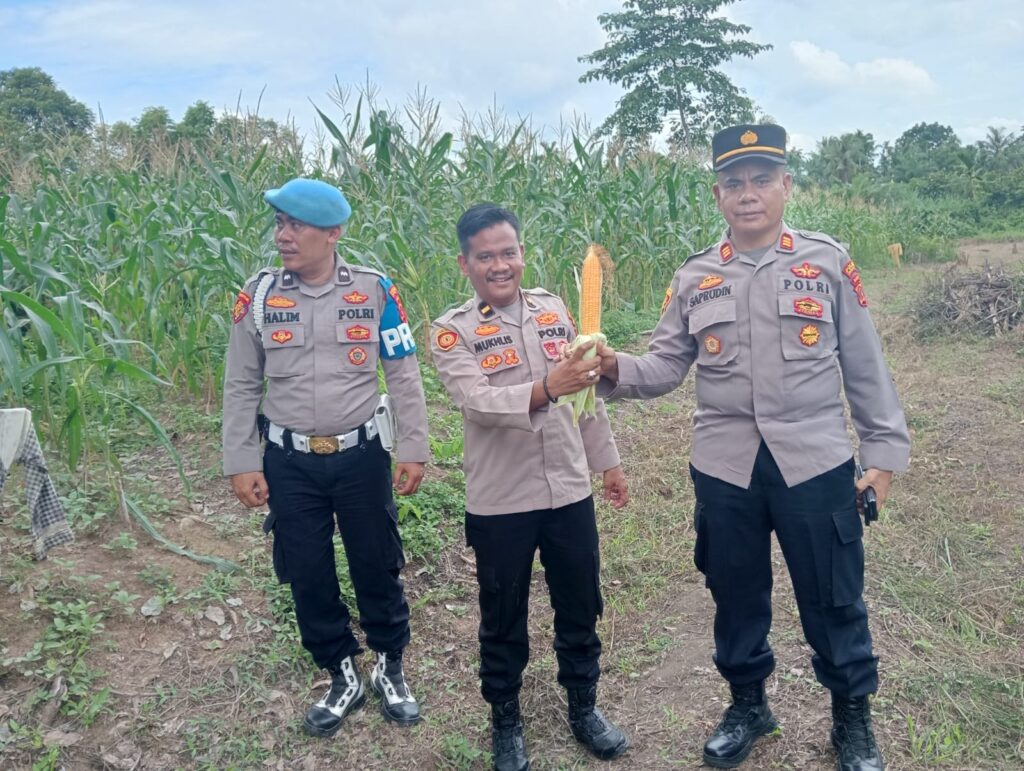 Lhokseumawe – Dalam upaya mendukung ketahanan pangan serta mempererat kemitraan dengan masyarakat, jajaran Polsek Blang Mangat melakukan pengecekan lahan jagung sekaligus membantu penanaman kembali di lahan pertanian milik warga di Desa Blang Buloh, Kecamatan Blang Mangat, Rabu (18/6/2025) siang.