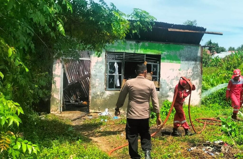 Aceh Utara – Personel Polsek Dewantara Polres Lhokseumawe bergerak cepat memberikan pelayanan kepolisian saat terjadi kebakaran satu unit rumah permanen di Dusun II Sejahtera, Desa Bangka Jaya, Kecamatan Dewantara, Kabupaten Aceh Utara, Sabtu (30/8/2025) sekitar pukul 11.00 WIB.
