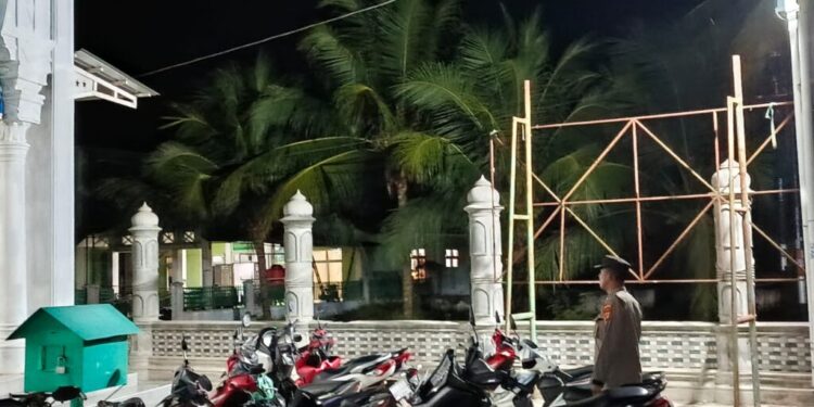 ACEH UTARA – Personel Polsek Kuta Makmur melaksanakan pengamanan shalat Isya dan Tarawih di Masjid Darul Muhya, Kecamatan Kuta Makmur, pada Minggu (23/3/2025) malam.