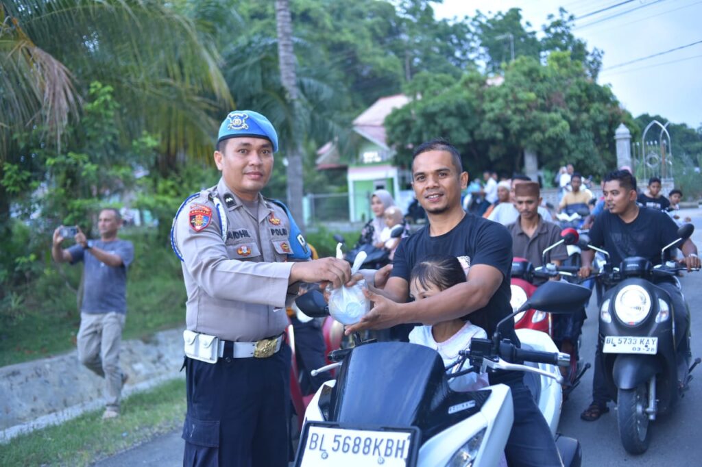 Aceh Utara – Dalam suasana penuh berkah di bulan suci Ramadhan, Polsek Kuta Makmur bersama Bhayangkari Ranting Kuta Makmur menggelar aksi berbagi dengan membagikan 300 paket takjil kepada masyarakat dan pengguna jalan di depan Mapolsek Kuta Makmur, Rabu (19/3/2025) sore.