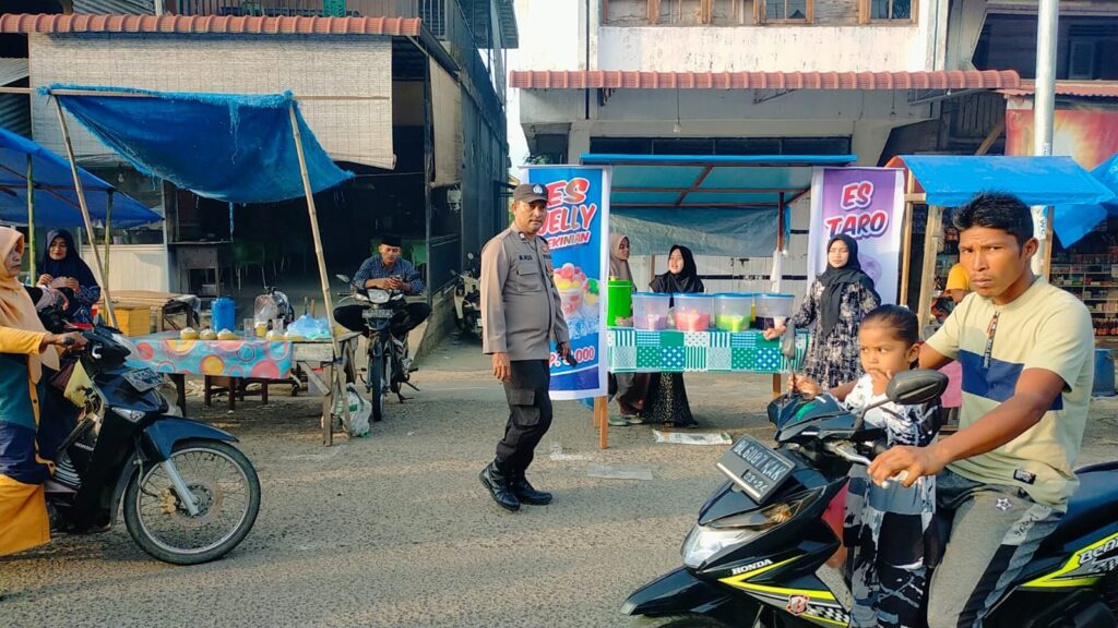 ACEH UTARA – Polsek Kuta Makmur melakukan pengamanan dan pengaturan arus lalu lintas dalam upaya menjaga kelancaran dan keamanan di Pasar Takjil Keude Blang Ara, Kecamatan Kuta Makmur, senin (18/3/2024) sore.