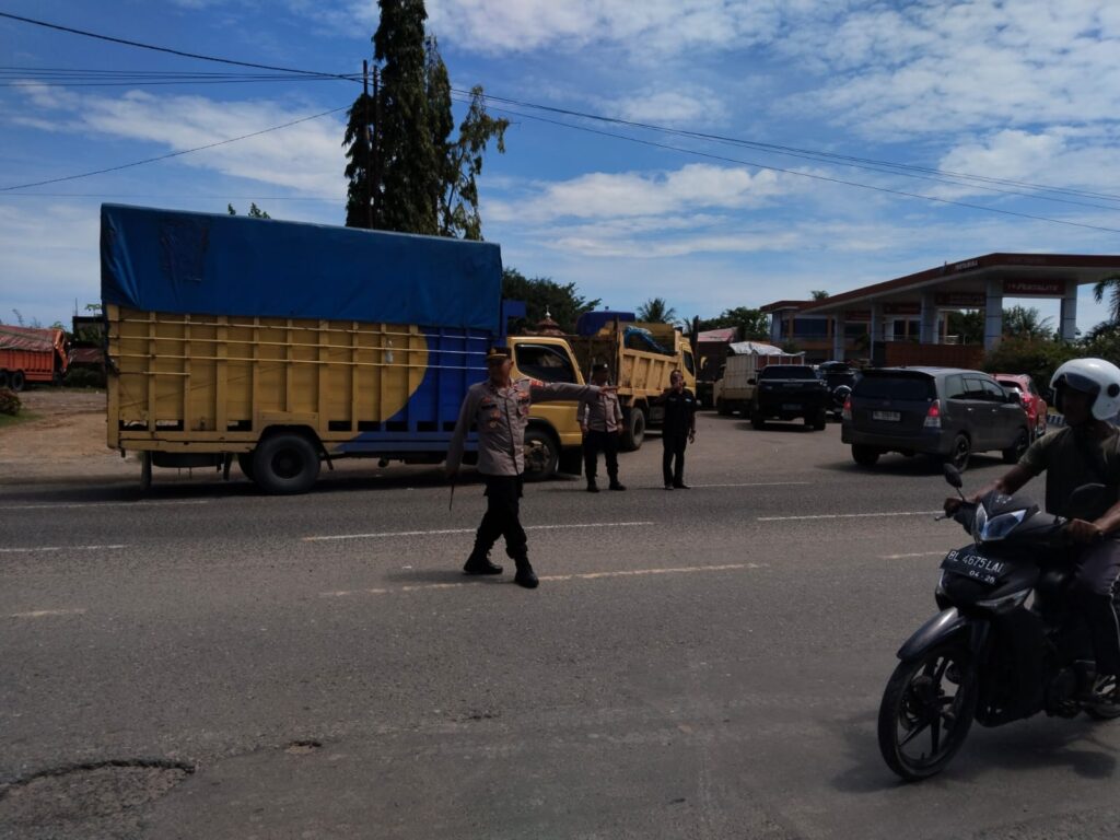 Lhokseumawe – Personel Polsek Muara Dua Polres Lhokseumawe melaksanakan kegiatan antisipasi antrian Bahan Bakar Minyak (BBM) subsidi jenis solar dan pertalite di SPBU Sawang Keupeula, Cunda, Kecamatan Muara Dua, Kota Lhokseumawe, Selasa (4/11/2025) sekitar pukul 11.20 WIB.