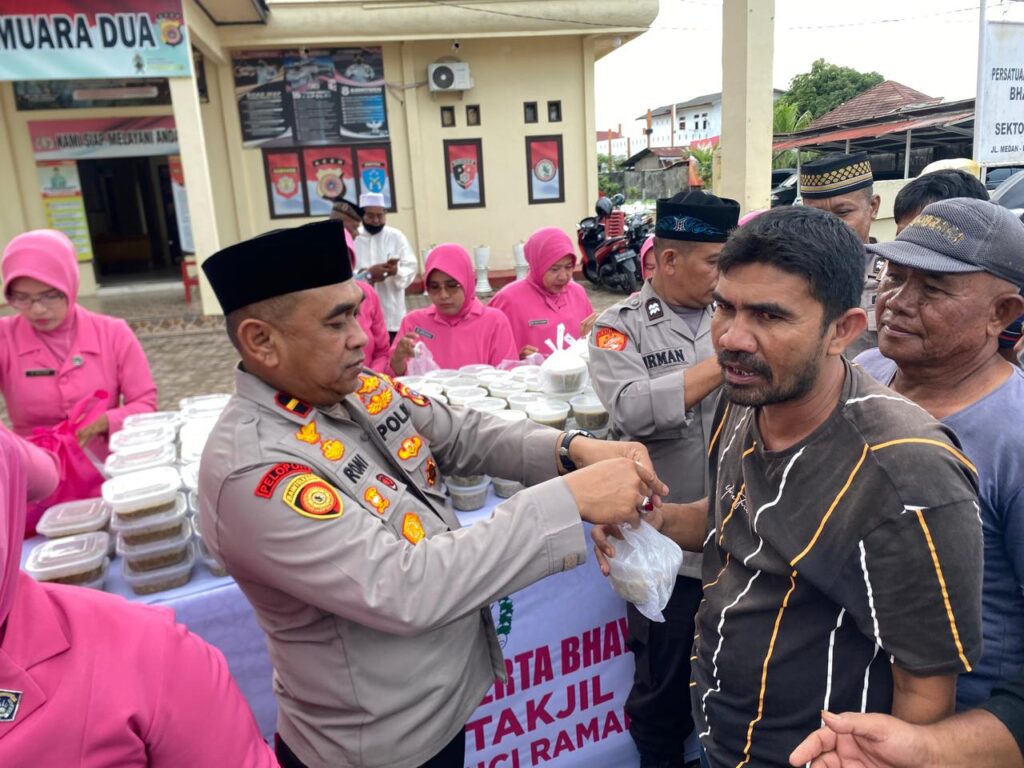 Kapolsek Muara Dua, Ipda Roni, SH, bersama Ketua Bhayangkari Ranting Muara Dua, Ny. Nurul Roni, memimpin langsung kegiatan yang diikuti sekitar 30 personel Polsek Muara Dua serta anggota Bhayangkari. Aksi berbagi ini merupakan wujud kepedulian Polri terhadap masyarakat dalam menyambut bulan suci Ramadhan 1446 H.