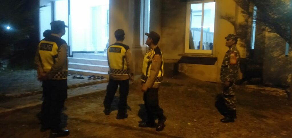 Lhokseumawe - Personel Polsek Syamtalira Bayu melaksanakan pengamanan pelaksanaan shalat berjamaah Isya dan Tarawih di…