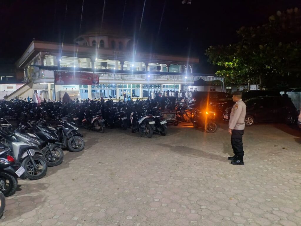 LHOKSEUMAWE – Dalam rangka menjaga keamanan dan ketertiban masyarakat (Harkamtibmas) selama bulan suci Ramadan, personel Polsek Muara Dua melaksanakan patroli dan pengamanan Shalat Tarawih di wilayah hukumnya, Rabu (4/3/2026) malam.