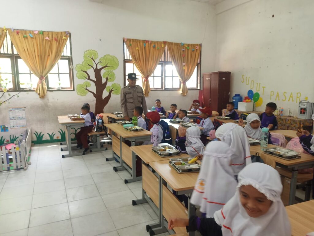 Lhokseumawe – Personel Polsek Muara Dua melakukan pengawalan dan pengamanan pembagian Program Makan Bergizi Gratis (MBG) dari Badan Gizi Nasional (BGN) di sejumlah sekolah dan posyandu di Kecamatan Muara Dua, Kota Lhokseumawe, Kamis (14/8/2025).