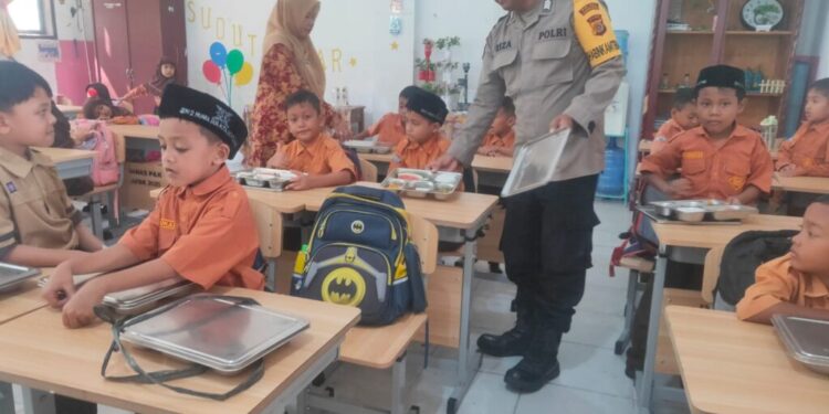 Lhokseumawe — Personel Polsek Muara Dua melakukan monitoring dan pengamanan pelaksanaan Program Makan Bergizi Gratis (MBG) dari Badan Gizi Nasional (BGN) yang disalurkan kepada para pelajar serta kelompok rentan, seperti balita, ibu hamil, dan ibu menyusui, di wilayah Kecamatan Muara Dua, Kota Lhokseumawe, Rabu (21/1/2026).