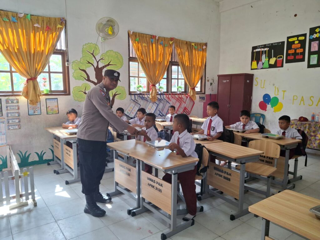 Personel Polsek Muara Dua turut memonitor langsung jalannya pendistribusian di sekolah-sekolah dan posyandu untuk memastikan pelaksanaan program pemerintah tersebut berjalan sesuai prosedur dan memberi manfaat nyata bagi masyarakat.