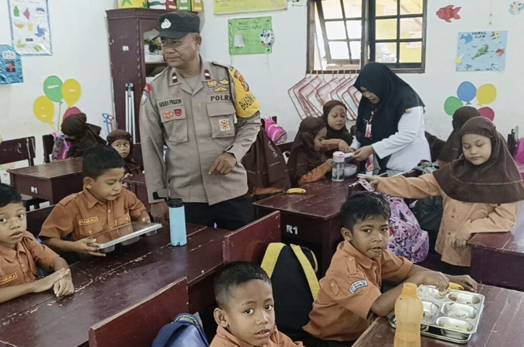 Lhokseumawe – Personel Polsek Muara Dua memonitoring pelaksanaan Program Makan Bergizi Gratis (MBG) dari Badan Gizi Nasional (BGN) yang disalurkan kepada para siswa sekolah serta kelompok B3 (balita, ibu hamil, dan ibu menyusui) di wilayah hukum Polsek Muara Dua, Polres Lhokseumawe, Kamis (13/11/2025).
