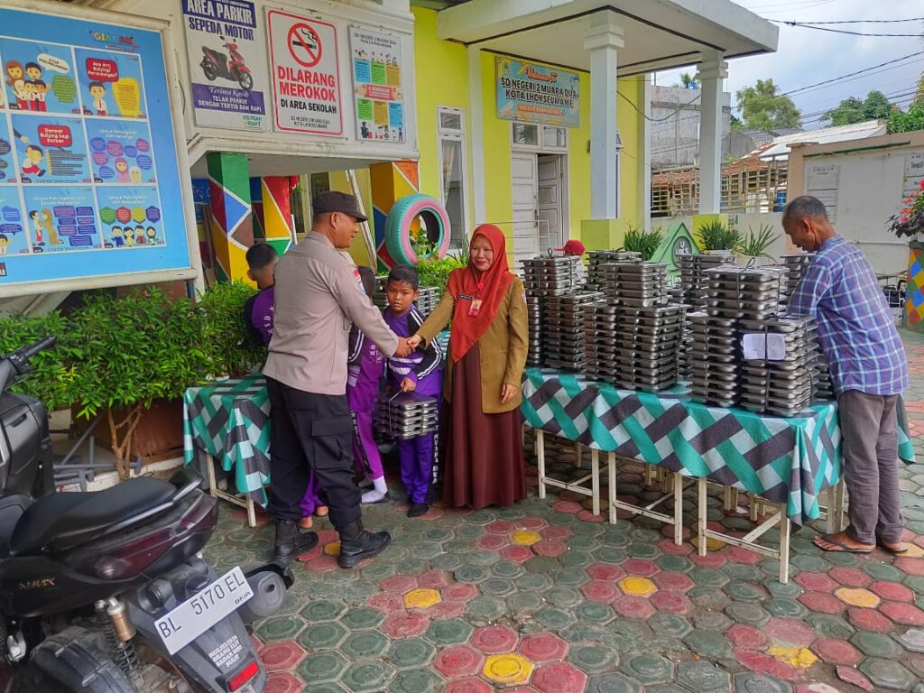 LHOKSEUMAWE – Personel Polsek Muara Dua Polres Lhokseumawe melaksanakan monitoring pelaksanaan Program Makan Bergizi Gratis (MBG) dari Badan Gizi Nasional (BGN) yang disalurkan kepada para siswa-siswi sekolah serta kelompok B3 (Balita, Ibu Hamil, dan Ibu Menyusui) di wilayah Kecamatan Muara Dua, Selasa (14/10/2025) pagi.