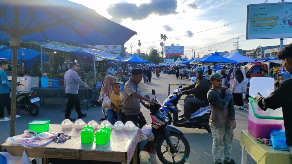 Lhokseumawe – Menjelang waktu berbuka puasa, arus lalu lintas dan aktivitas masyarakat di kawasan Pasar Batuphat Timur, Kecamatan Muara Satu, Kota Lhokseumawe, meningkat pesat. Untuk memastikan kelancaran dan keamanan, personel Polsek Muara Satu melaksanakan patroli serta pengamanan terbuka pada Rabu (12/3/2025) sore.