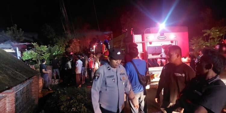 Lhokseumawe – Personel Polsek Muara Satu, Polres Lhokseumawe, bergerak cepat mengamankan lokasi kebakaran sebuah rumah permanen yang dijadikan kos-kosan mahasiswa di Kompleks BTN Dusun Tgk Seumatang, Desa Padang Sakti, Kecamatan Muara Satu, Minggu (29/6/2025) dini hari.