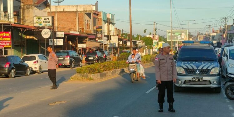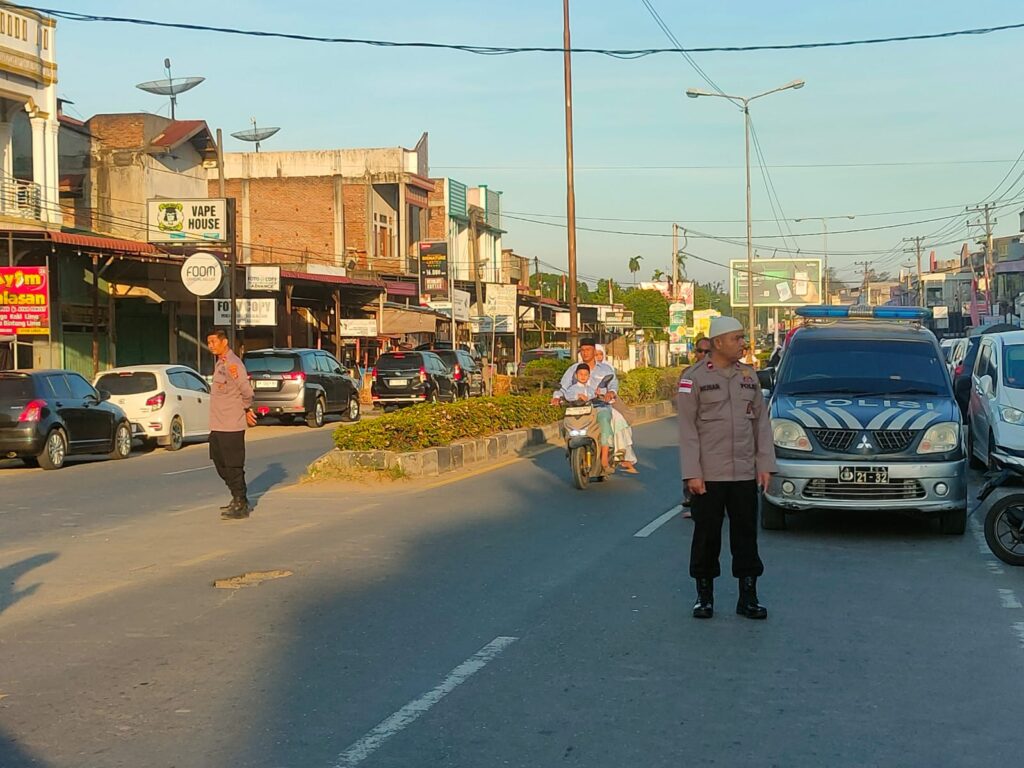 Kegiatan pengamanan yang dimulai sejak pukul 07.00 WIB ini bertujuan untuk memastikan umat Muslim dapat menjalankan ibadah Shalat Idul Fitri dengan aman, nyaman, dan khusyuk.