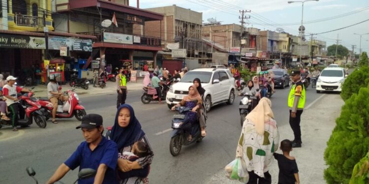 LHOKSEUMAWE – Polsek Muara Satu mengerahkan empat personil melakukan patroli dan pengamanan untuk mengantisipasi guantibmas dan memastikan kelancaran dan keamanan bagi para pengunjung pasar batuphat jelang berbuka puasa, minggu (24/3/2024) sore.