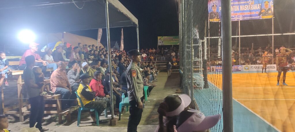 Aceh Utara – Polsek Nisam, Polres Lhokseumawe, melaksanakan pengamanan kegiatan turnamen bola voli Kapolres Lhokseumawe Cup dalam rangka memperingati Hari Sumpah Pemuda ke-96 tahun 2025. Kegiatan tersebut berlangsung di Lapangan Malaka FC, Gampong Cot Mee, Kecamatan Nisam, Kabupaten Aceh Utara, Senin malam (20/10/2025).