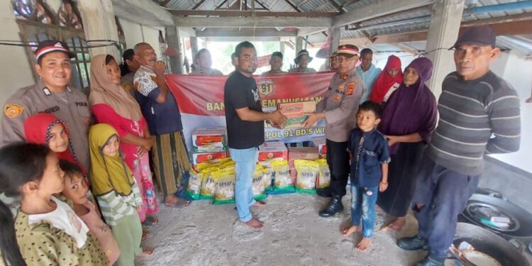 Polres Lhokseumawe Bantu Warga Nibong, Sembako Diserahkan di Meunasah Gampong