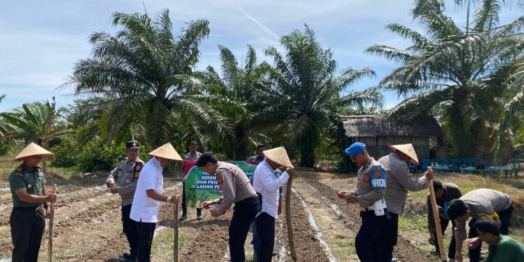 Aceh Utara – Dalam mendukung program prioritas nasional di bidang ketahanan pangan, Polsek Samudera Polres Lhokseumawe melaksanakan kegiatan Penanaman Jagung Serentak Kuartal III dan Penanaman Jagung di Lahan Perhutanan Sosial yang berlokasi di Desa Pusong, Kecamatan Samudera, Kabupaten Aceh Utara, Rabu siang (09/07/2025).