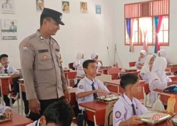 Polsek Sawang Amankan Zona Sekolah dalam giat Strong Poin Pagi