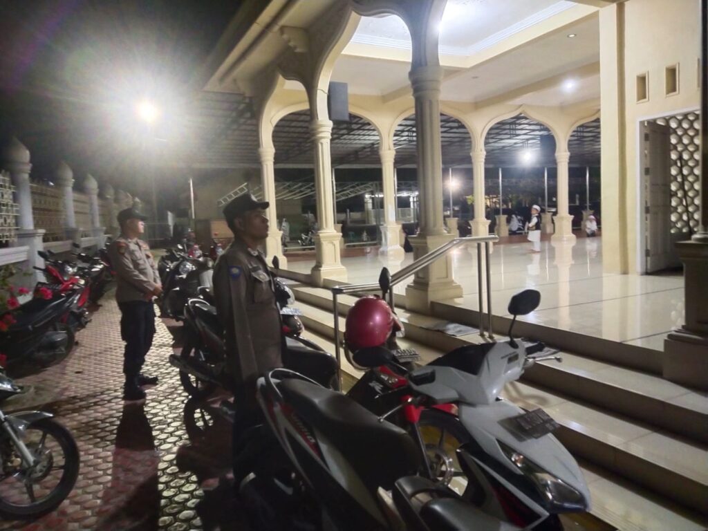 Aceh Utara – Polsek Syamtalira Bayu turut serta dalam menjaga kelancaran ibadah umat Islam dengan melaksanakan pengamanan pelaksanaan shalat tarawih di Mesjid Syuhada Mideun, Kecamatan Syamtalira Bayu, senin(18/3/2024) malam.