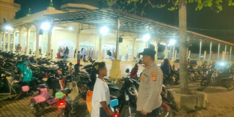 Lhokseumawe – Personel Polsek Syamtalira Bayu melaksanakan pengamanan pelaksanaan shalat berjamaah Isya dan Tarawih di Masjid Syuhada Mideun, Kecamatan Syamtalira Bayu, Kabupaten Aceh Utara, Minggu (15/3/2026) malam.