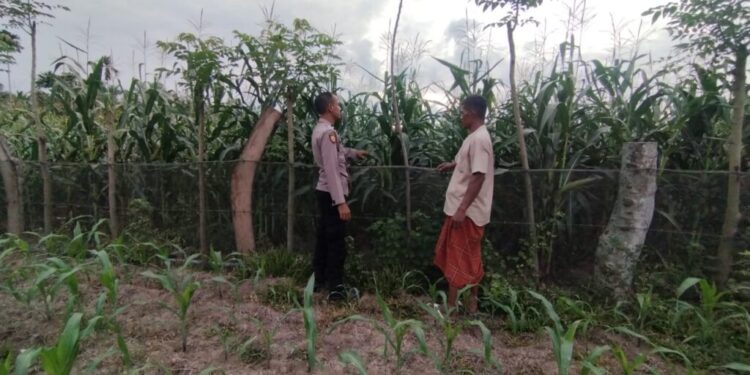 Kapolsek Syamtalira Bayu yang didampingi sejumlah anggota turut bersama masyarakat Kelompok Tani Sawit Zamzam yang diketuai Zamzami (40). Mereka bersama-sama meninjau kondisi lahan jagung kuartal III tahun 2025 seluas 3 hektare.