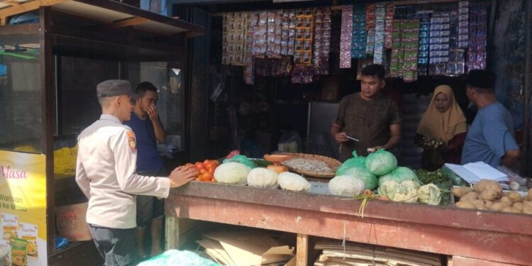 ACEH UTARA – Personel Polsek Syamtalira Bayu, Polres Lhokseumawe, melaksanakan patroli dialogis di Pasar Keude Bayu, Kecamatan Syamtalira Bayu, Kabupaten Aceh Utara, Selasa (3/2/2026).