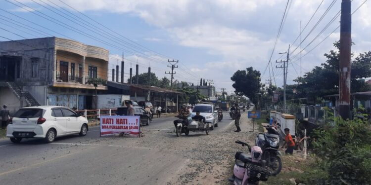 Aceh Utara — Kepolisian Sektor (Polsek) Syamtalira Bayu mengimbau seluruh pengguna jalan agar meningkatkan kewaspadaan saat melintasi jembatan rusak di jalur nasional tepatnya di depan UPTD Puskesmas Kecamatan Syamtalira Bayu, Kabupaten Aceh Utara, Rabu (24/12/2025).