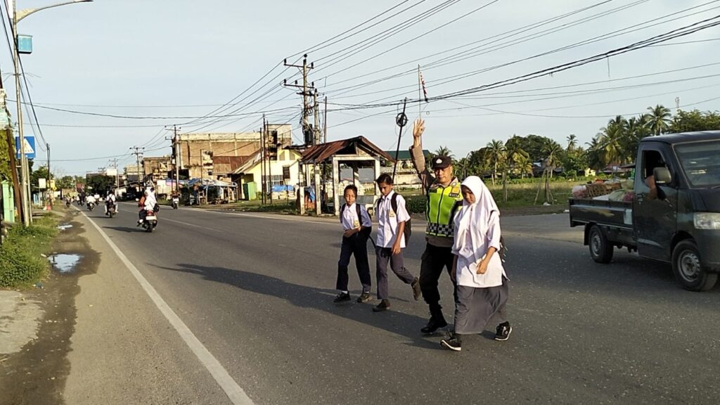 ACEH UTARA, Dalam upaya mengantisipasi kemacetan lalu lintas di depan Sekolah, SD, SMP dan SMA Negeri di simpang Cot Pling di Wilayah Polsek Syamtalira Bayu Polres Lhokseumawe Polda Aceh melaksanakan kegiatan Strong Point pada pagi hari. Kegiatan ini bertujuan untuk memastikan arus lalu lintas berjalan lancar, terutama pada jam-jam sibuk di pagi hari. Kamis.26 /09/2024 Pagi.