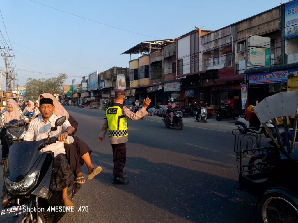 LHOKSEUMAWE – Polsek Syamtalira Bayu menggelar pengamanan dan pengaturan lalu lintas di Pasar Keude Bayu, menjelang Berbuka Puasa Ramadhan 1445 H. Dua personel Polsek turut serta dalam kegiatan ini, kamis (14/3/2024) sore.