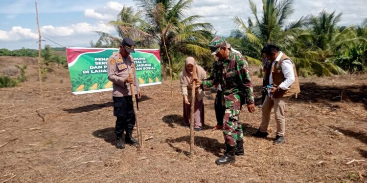 Aceh Utara – Sebagai bentuk dukungan terhadap Program Asta Cita Pemerintah di bidang ketahanan pangan, Polsubsektor Banda Baro Polres Lhokseumawe bersama Muspika dan kelompok tani melaksanakan penanaman perdana jagung serentak Kuartal III di lahan perhutanan sosial binaan Polsubsektor, tepatnya di Desa Sangkelan, Kecamatan Banda Baro, Kabupaten Aceh Utara, Rabu (09/07/2025) pukul 14.00 WIB.
