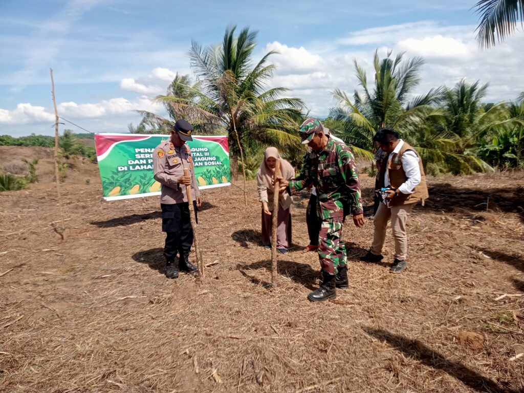 Aceh Utara – Sebagai bentuk dukungan terhadap Program Asta Cita Pemerintah di bidang ketahanan pangan, Polsubsektor Banda Baro Polres Lhokseumawe bersama Muspika dan kelompok tani melaksanakan penanaman perdana jagung serentak Kuartal III di lahan perhutanan sosial binaan Polsubsektor, tepatnya di Desa Sangkelan, Kecamatan Banda Baro, Kabupaten Aceh Utara, Rabu (09/07/2025) pukul 14.00 WIB.