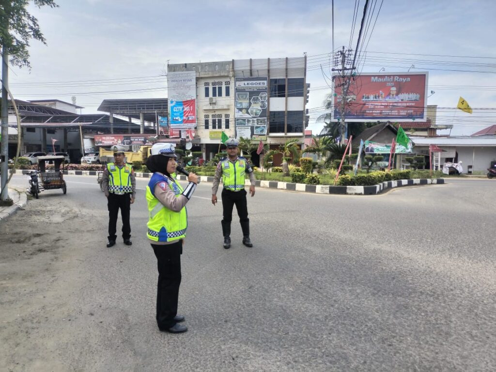LHOKSEUMAWE – Melalui program Polisi Meupep – Pep, Polwan dari Sat Lantas Polres Lhokseumawe mengimbau masyarakat pengguna jalan raya agar taat aturan berlalu lintas, kegiatan ini dilaksanakan di Simpang Pos Lantas Cunda, Muara Dua, Kota Lhokseumawe, Rabu (3/1/2024).