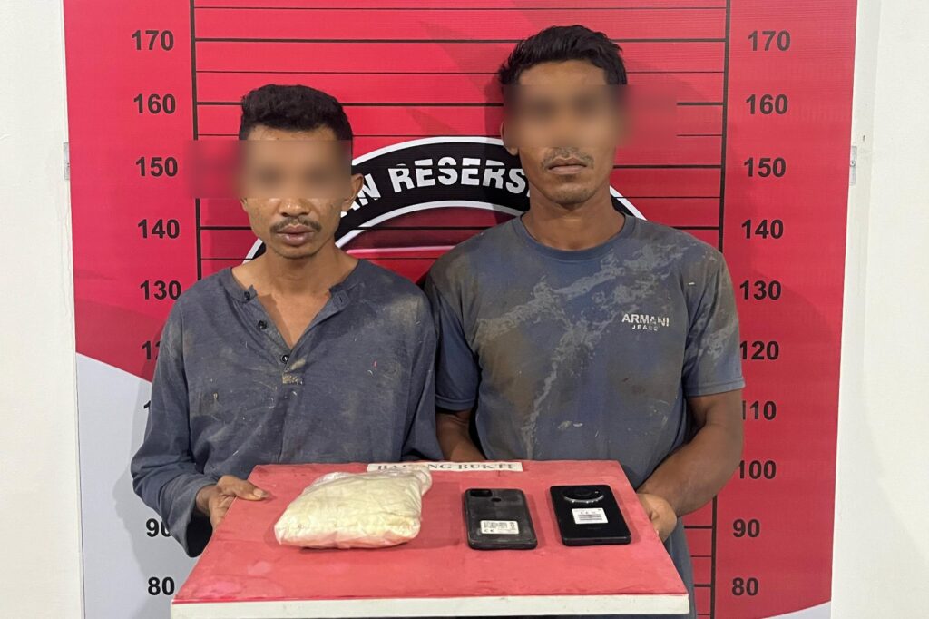 ACEH UTARA – Satuan Reserse Narkoba Polres Aceh Utara berhasil mengungkap kasus peredaran narkotika jenis ekstasi di Gampong Me Merbo, Kecamatan Tanah Pasir, Kamis (17/4/2025). Dua pria warga setempat, masing-masing berinisial MJ (34) dan Z (31), diringkus saat akan melakukan transaksi di sebuah bangunan yang digunakan sebagai tempat pompa pengairan sawah.