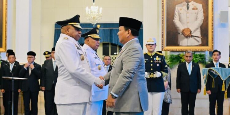 Jakarta – Presiden Prabowo Subianto melantik Matius Fakhiri sebagai Gubernur dan Aryoko Alberto Ferdinand Rumaropen sebagai Wakil Gubernur Papua masa jabatan 2025–2030, di Istana Negara, Jakarta, pada Rabu (8/10/2025).