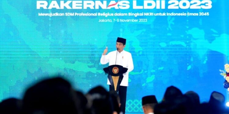 Demikian disampaikan Presiden dalam sambutannya saat meresmikan pembukaan Rapat Kerja Nasional Lembaga Dakwah Islam Indonesia (LDII) Tahun 2023 dan peresmian Gedung Serbaguna Minhaajurrosyidiin di Grand Ballroom Gedung Serbaguna Minhaajurrosyidiin, Jakarta, Selasa ( 7/11/2023)..