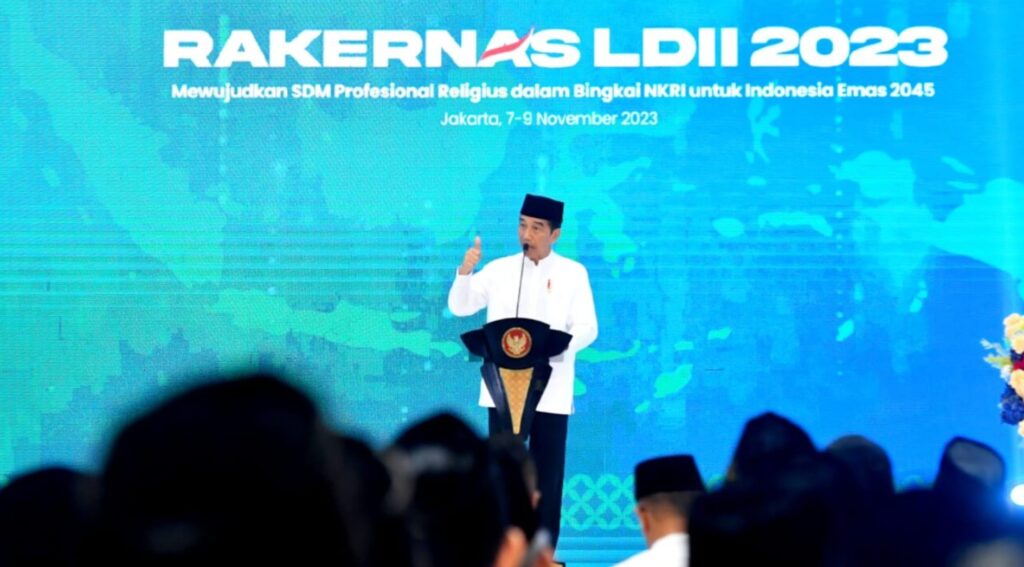 Demikian disampaikan Presiden dalam sambutannya saat meresmikan pembukaan Rapat Kerja Nasional Lembaga Dakwah Islam Indonesia (LDII) Tahun 2023 dan peresmian Gedung Serbaguna Minhaajurrosyidiin di Grand Ballroom Gedung Serbaguna Minhaajurrosyidiin, Jakarta, Selasa ( 7/11/2023)..