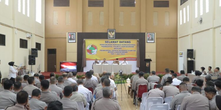 Lhokseumawe – Primkopol Polres Lhokseumawe resmi dikukuhkan menjadi Primkopol Tahtya Dharaka Syari’ah, Senin pagi (22/9/2025). Pengukuhan berlangsung di Mapolres Lhokseumawe dengan dihadiri Kapolres Lhokseumawe AKBP Dr. Ahzan, S.H., S.I.K., M.S.M., M.H, Kepala Dinas Perindustrian, Perdagangan, Koperasi dan UKM (Disperindagkop) Kota Lhokseumawe Muhammad Rizal, Ketua Primkopol AKP (Purn) Abdul Latif, jajaran pembina dan pengawas koperasi, serta anggota koperasi yang terdiri dari pejabat utama dan personel Polres Lhokseumawe.