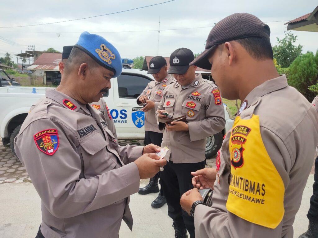 LHOKSEUMAWE – Propam Polres Lhokseumawe menggelar operasi penegakan ketertiban dan disiplin (gaktiblin) di Mako Polsek Meurah Mulia, Rabu (10/5/2023).