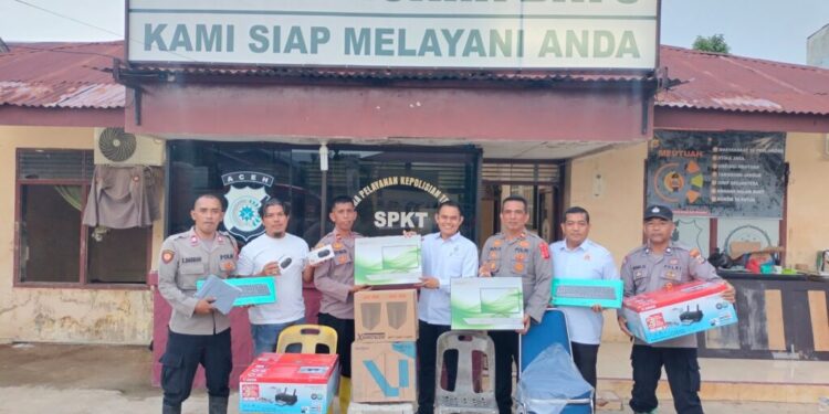 Lhokseumawe — Upaya pemulihan pelayanan kepolisian pascabencana banjir terus dilakukan Polres Lhokseumawe. Salah satunya dengan menyerahkan bantuan perlengkapan kantor kepada Polsek Muara Batu yang sebelumnya terdampak banjir dan menyebabkan sejumlah fasilitas operasional terendam.