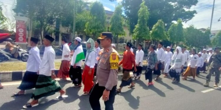 LHOKSEUMAWE – Puluhan personel Polres Lhokseumawe melakukan pengamanan aksi damai bela Palestina di depan Masjid Islamic Center, Kota Lhokseumawe yang dilaksanakan oleh Gerakan Nasional Anti LGBT (Graniti), Selasa (14/11/2023).