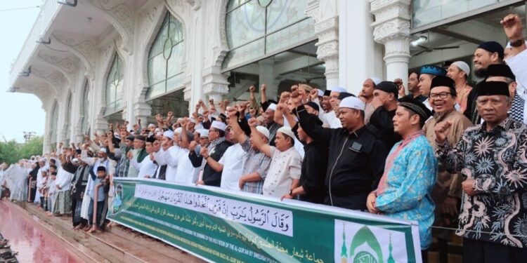 Jamaah ini mengutuk Pemimpin partai sayap kanan Denmark Stram Kurs bernama Rasmus Paludan pad hari Sabtu, (21/1/2023) yang membakar Al-Qur’an di Stockholm, ibu kota Swedia. Di bawah perlindungan polisi Swedia, pemimpin partai Stram Kurs Denmark Rasmus Paludan membakar kitab suci umat Islam di dekat gedung Kedutaan Besar Turki. Sebelumnya, aktivis anti-Islam juga telah melakukan aksi kontroversial dengan membakar Al-Qur’an di depan Kedutaan Besar Turki di Stockholm pada 21 Januari lalu. “Aksi itulah yang membuat kami protes dan mengutuknya karena telah melukai harga diri ummat islam dan para jamaah sekalian” Tutur Tgk. Ali Basyah Selaku Koordinator Aksi yang juga Khadim Syiar Muhibbah Shubuh
