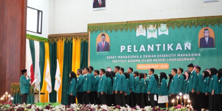 Lhokseumawe – Senat Mahasiswa dan Dewan Eksekutif Mahasiswa Institut Agama Islam Negeri (IAIN) Lhokseumawe periode 2024/2025 resmi dilantik oleh Rektor IAIN Lhokseumawe, Prof. Dr. Danial, M.Ag. Kamis (25/4/2024).