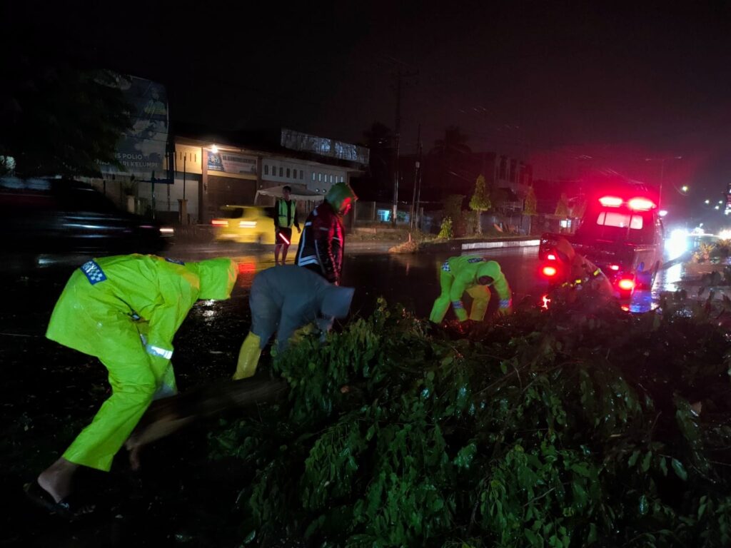 “Setalah menerima informasi adanya pohon tumbang yang menutupi badan jalan, sejumlah personel menuju ke TKP membantu memindahkan pohon dan mengatur arus lalu lintas,” ujarnya.