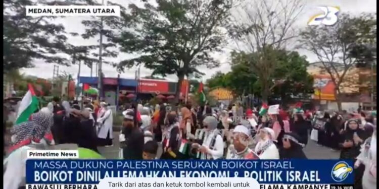 Massa menyerukan boikot terhadap produk yang mendukung genosida Israel terhadap Palestina. Massa berpawai dari Masjid Raya Kota Medan dan menyusuri jalan-jalan utama Kota Medan. Massa menilai gerakan boikot yang juga berlaku di dunia berpengaruh bukan hanya dari segi ekonomi tapi juga politik zionis Israel.