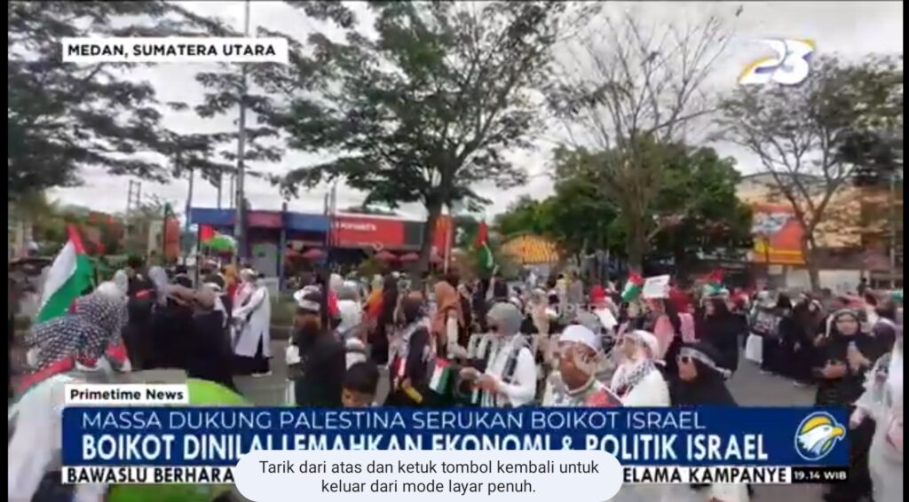 Massa menyerukan boikot terhadap produk yang mendukung genosida Israel terhadap Palestina. Massa berpawai dari Masjid Raya Kota Medan dan menyusuri jalan-jalan utama Kota Medan. Massa menilai gerakan boikot yang juga berlaku di dunia berpengaruh bukan hanya dari segi ekonomi tapi juga politik zionis Israel.