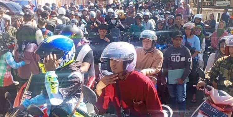 Sejak pukul 06.00 WIB, warga mulai berdatangan, dengan banyak di antaranya yang sudah antre sejak subuh. Mayoritas pengunjung datang menggunakan sepeda motor, menyebabkan tumpukan kendaraan yang memenuhi halaman kantor hingga ke badan jalan.